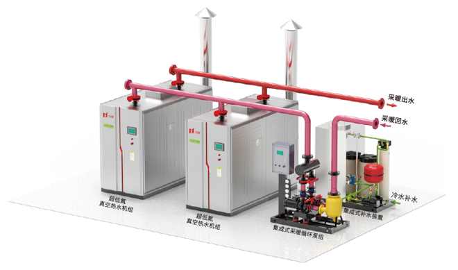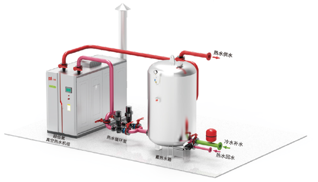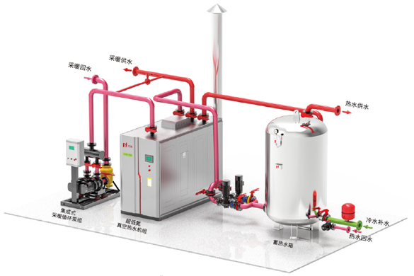 5001拉斯維加斯微壓相變熱水鍋爐主要由鍋爐本體和換熱器二部分組成,通過真空泵抽氣后形成一個密閉腔。運行時,密閉腔(鍋)內工作壓力微正壓(不大于0.1MPa),熱媒水充注在密閉腔(鍋)內,燃料燃燒后傳熱給熱媒水,熱媒水吸熱后沸騰蒸發變成蒸汽,蒸汽上升到換熱器管外遇冷凝結放熱將熱量傳遞給上部換熱器內流過的系統水,系統水溫度升高(供水溫度≤110℃)、輸出供熱。